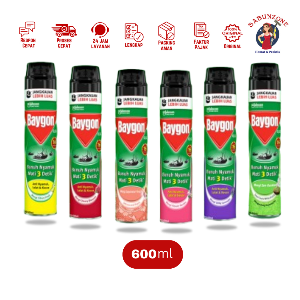 Pembasmi Serangga Baygon Flower Garden/ Zen Garden / Cherry Blossom / Citrus Fresh / Silky Lavender /Japanese Peach Aerosol Spray 600 ml