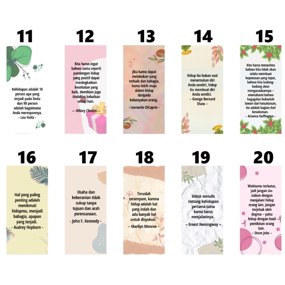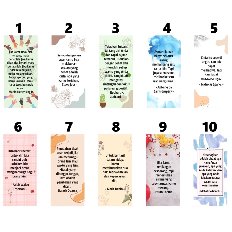 Pembatas Buku Tema Kehidupan Motivasi dan Penyemangat dari Para Ahli Tokoh untuk Acara Seminar dan Workshop