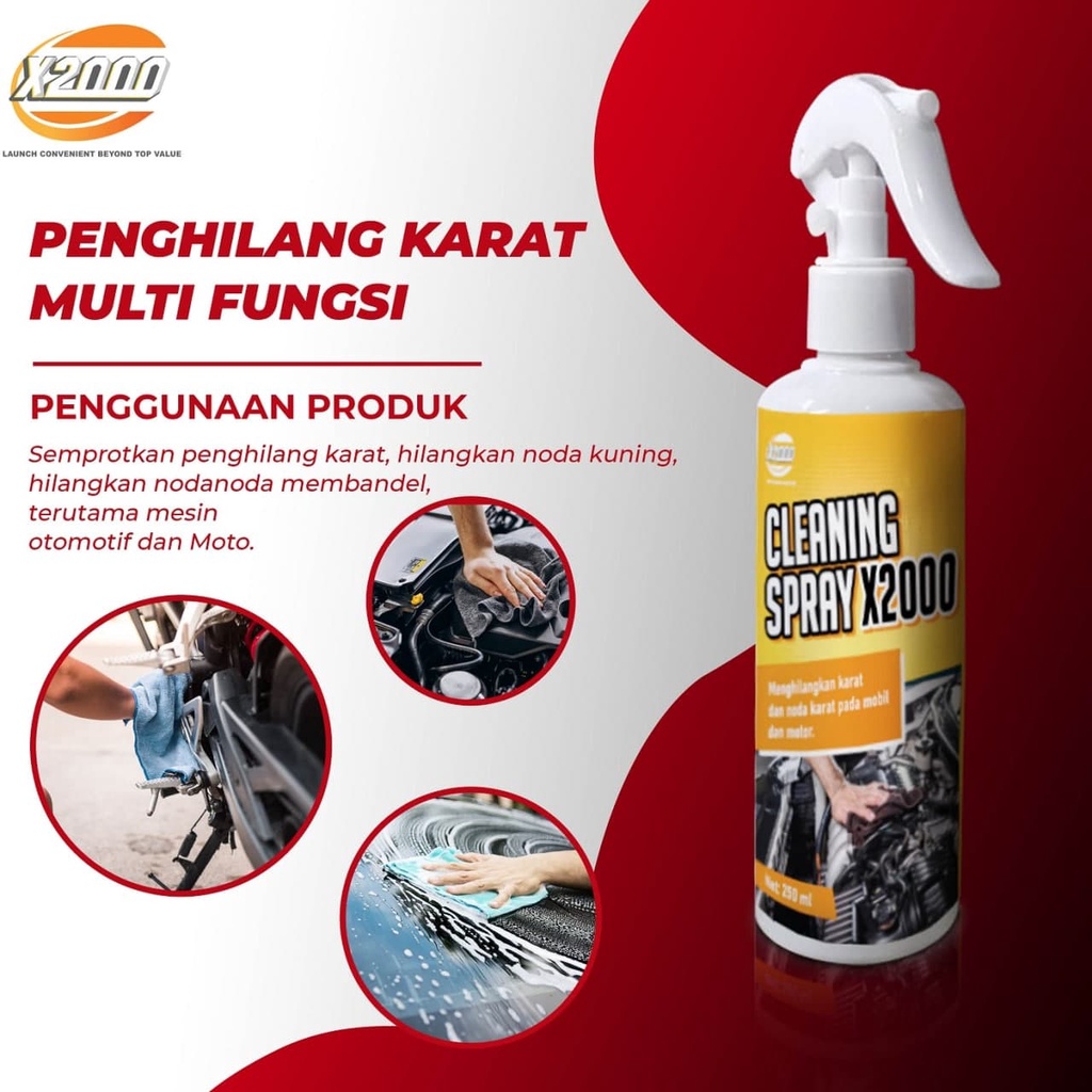 Cleaning spray X2000, Pembersih karat mesin motor X2000, Cairan pembersih x2000, Menghilangkan karat, minyak kotor, lumpur, noda jamur di jok kulit