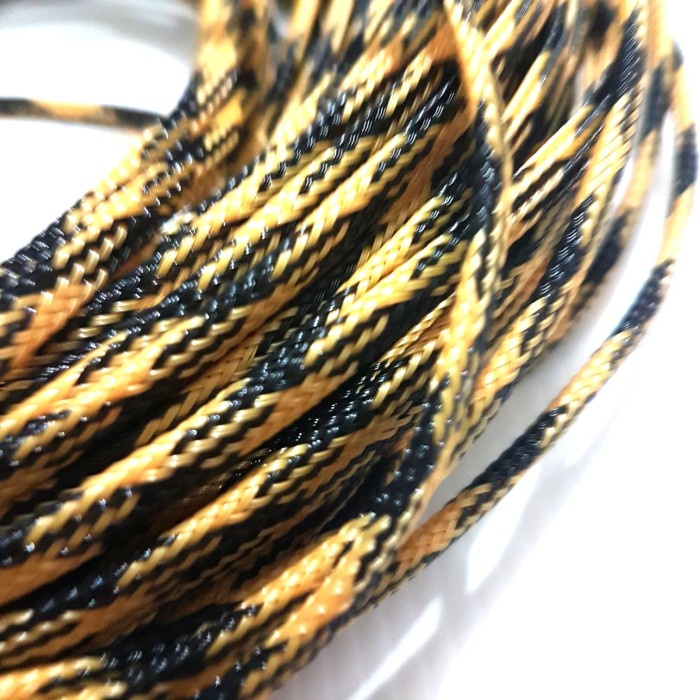 Pembungkus Kabel 6 mm Hitam Kuning Cable Sleeve braided nylon