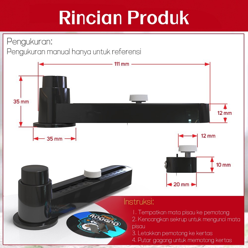 Pemotong Lingkaran Plastik untuk Pembuatan Pin Button, Ukuran Pemotongan Dapat Disesuaikan - 1,5 Inci hingga 6,7 Inci 38mm-170mm