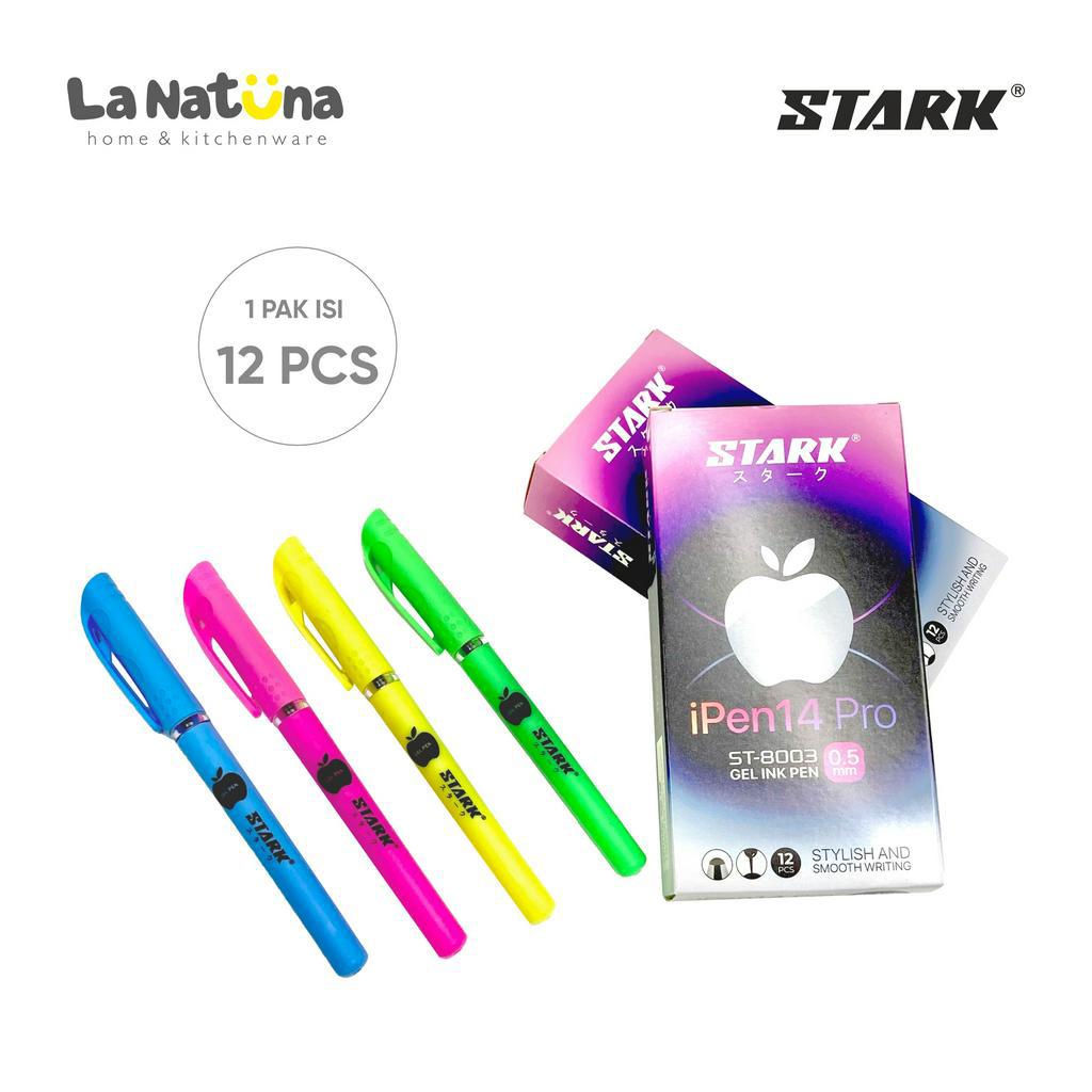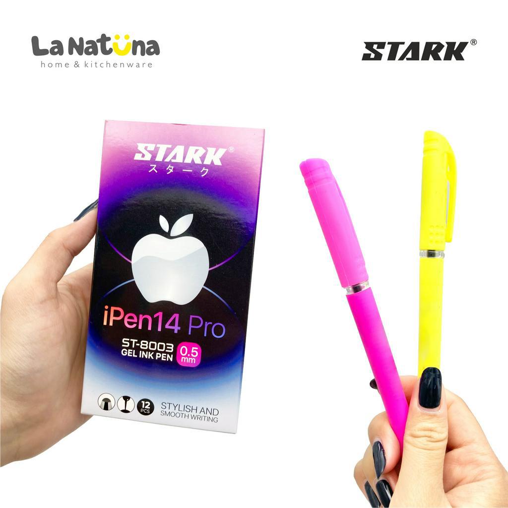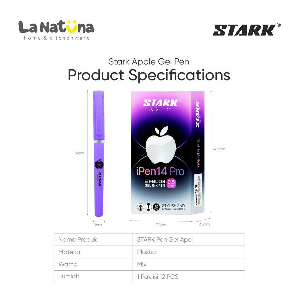 Pen Apel Gel Stark 12 Pcs Pulpen Sekolah Kantor Tinta Hitam Pen Apple