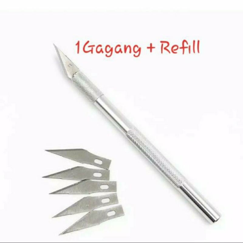 Pen Cutter Set + Reffil 5 Pcs Art Knife Pisau Cutting Sticker Gundam Gunpla Pen Cutter Pisau Presisi pisau sayat bonsai pisau stek tanaman serbaguna