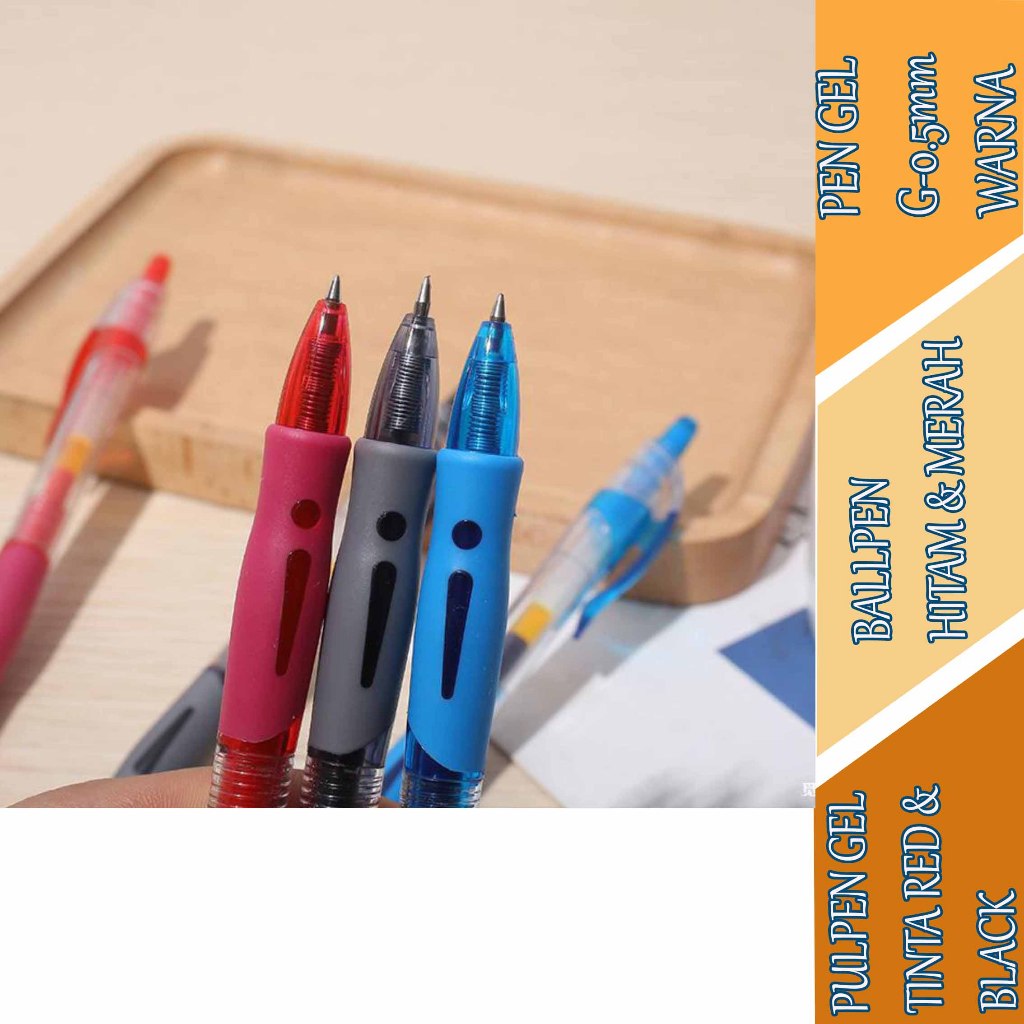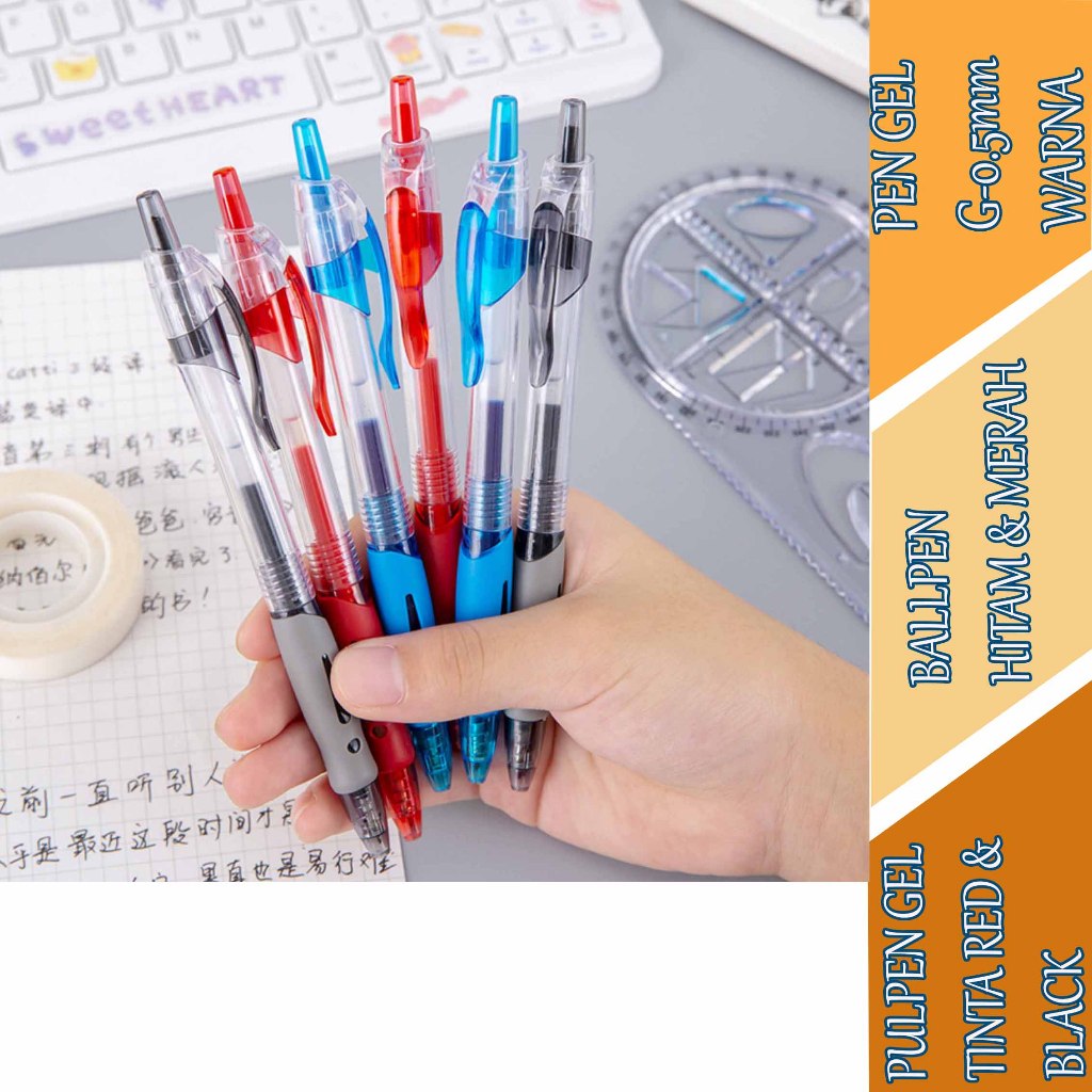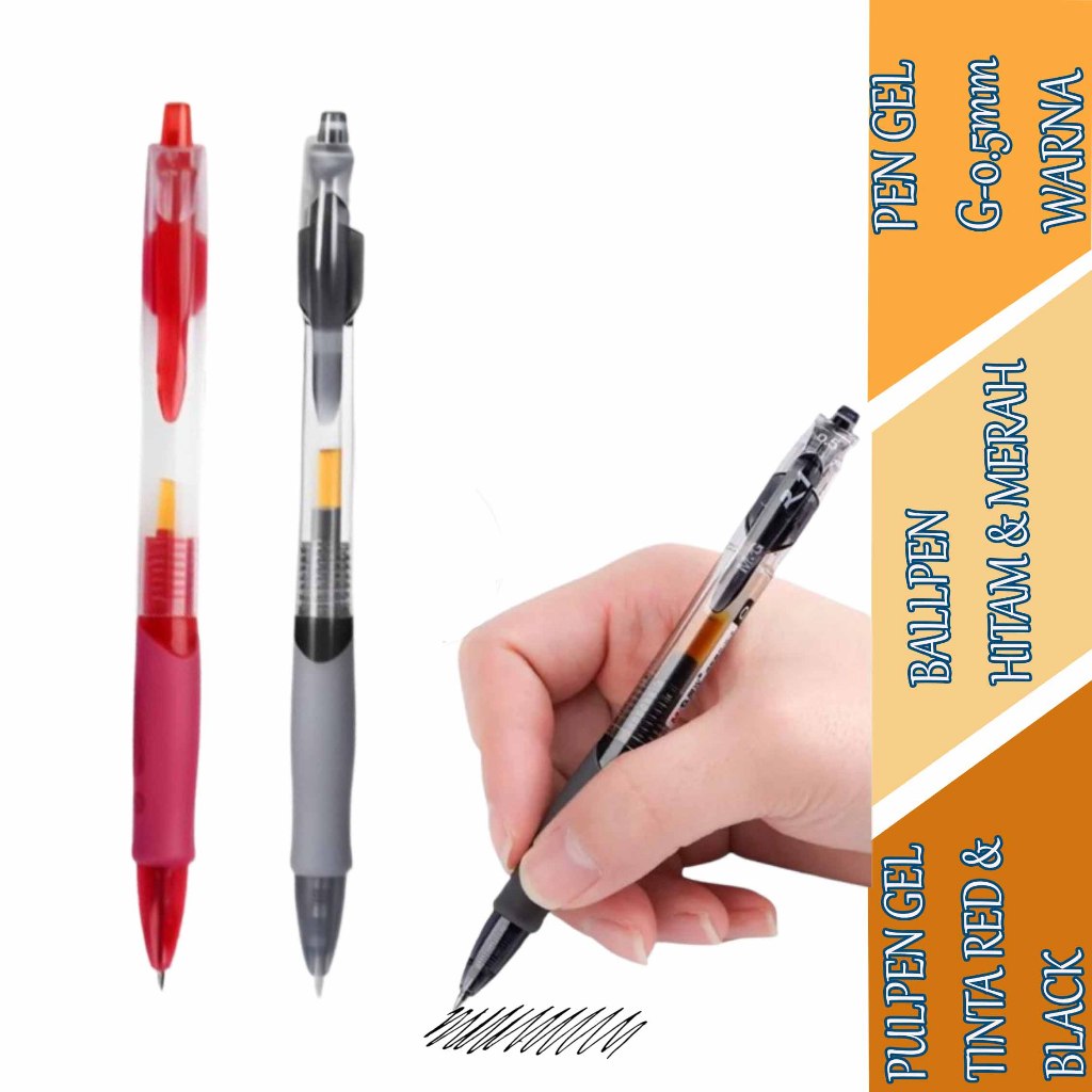 Pen Gel Tinta Red & Black - Ballpen Hitam & Merah - Pulpen Gel Tinta Warna - 0.5mm