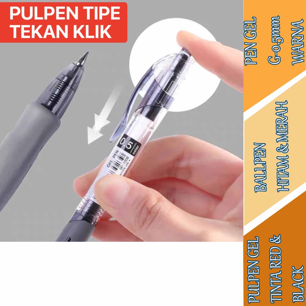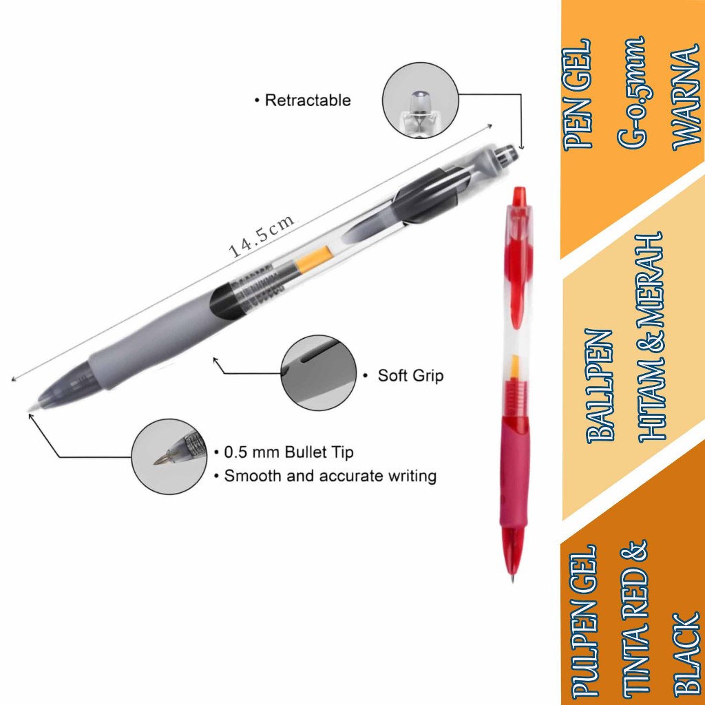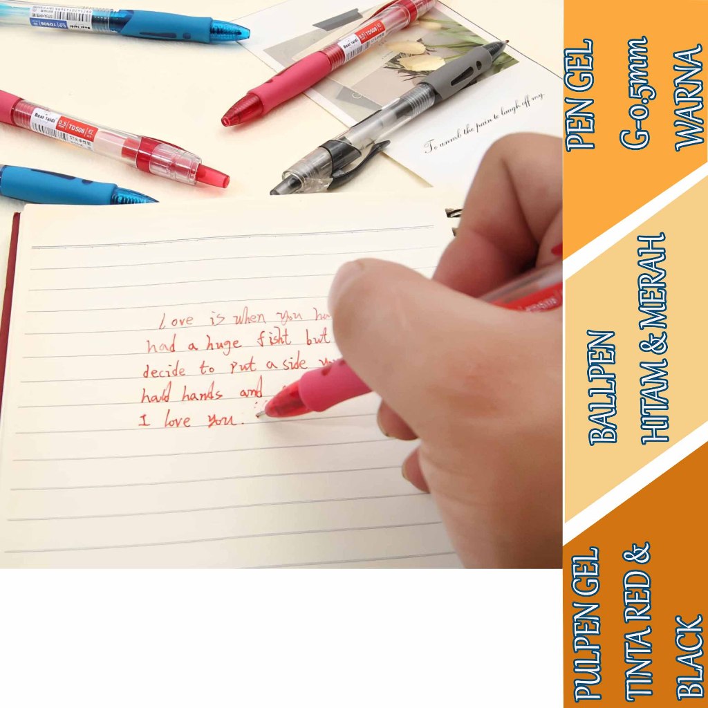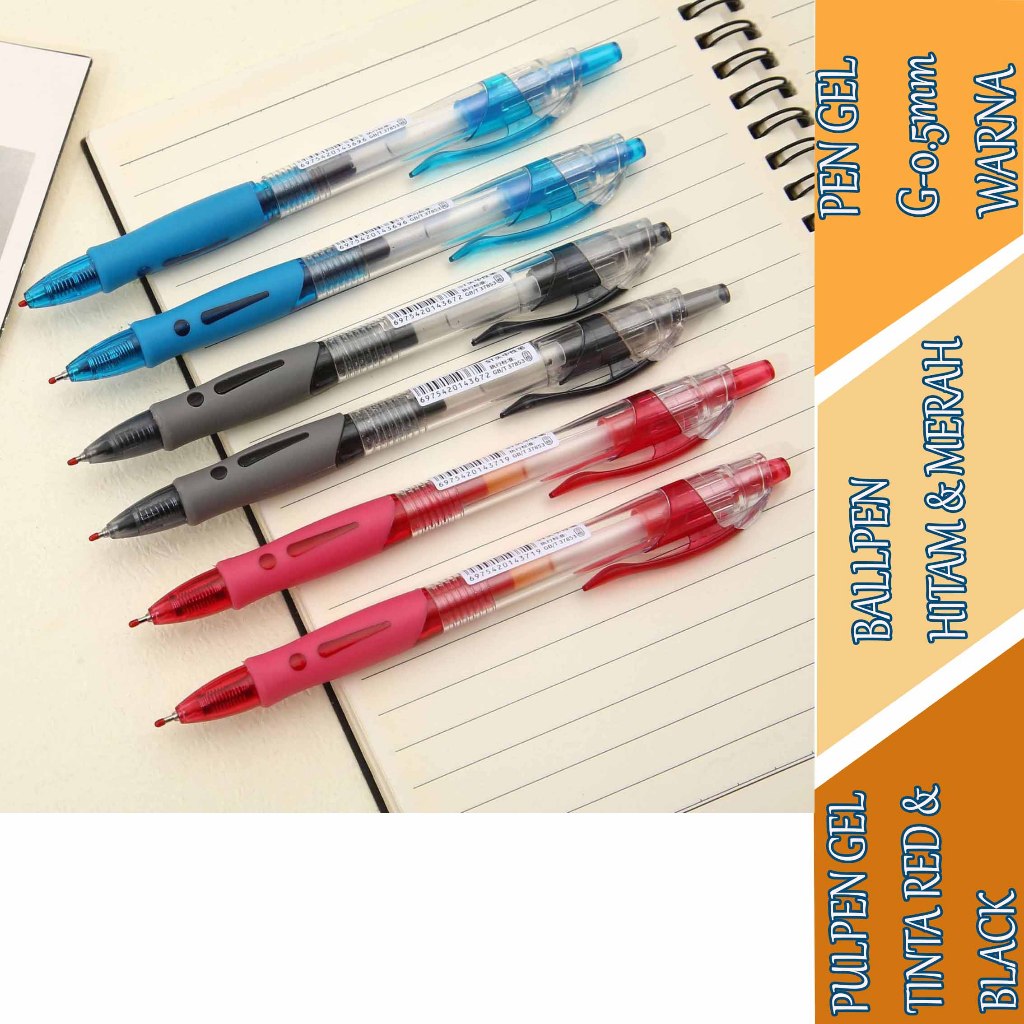 Pen Gel Tinta Red & Black - Ballpen Hitam & Merah - Pulpen Gel Tinta Warna - 0.5mm