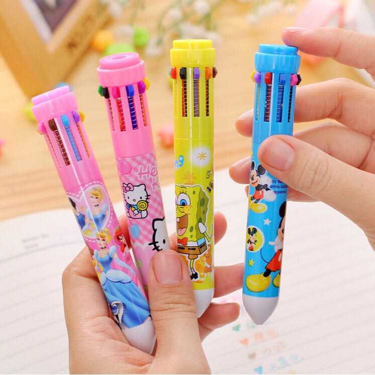 Pena Ballpoint Multi Warna 10 in 1 / Pulpen 10 Warna / Pulpen Warna 10 in 1 / Pulpen Unik Lucu