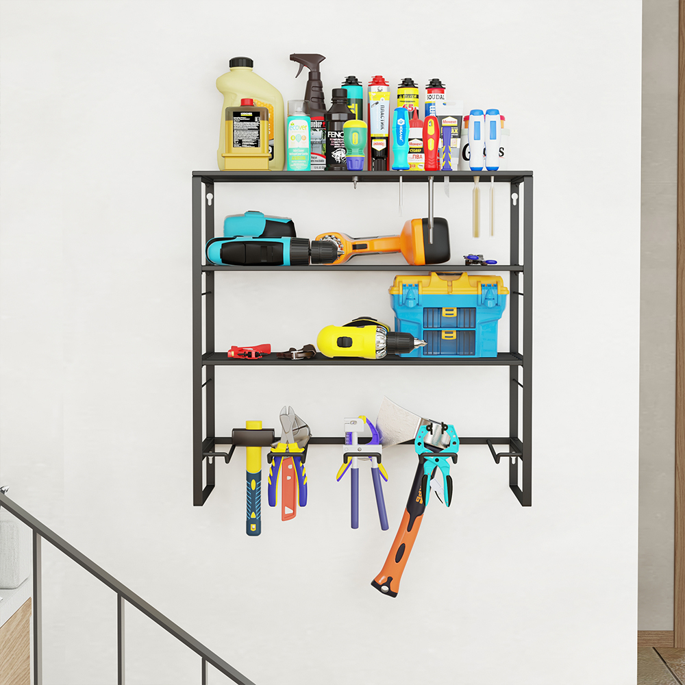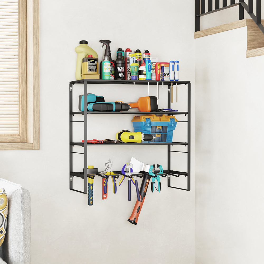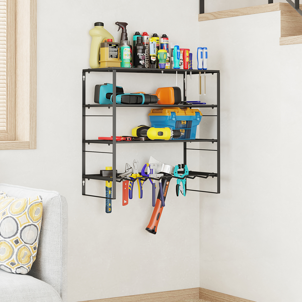 Pengatur Perkakas Listrik, Rak Penyimpanan untuk Organisasi Garasi, Tempat Bor Tanpa Kabel Pemasangan di Dinding dan Rak Baterai, Rak Perkakas dengan Stasiun Pengisian Daya, Rak Utilitas Tugas Berat - Logam - Besar