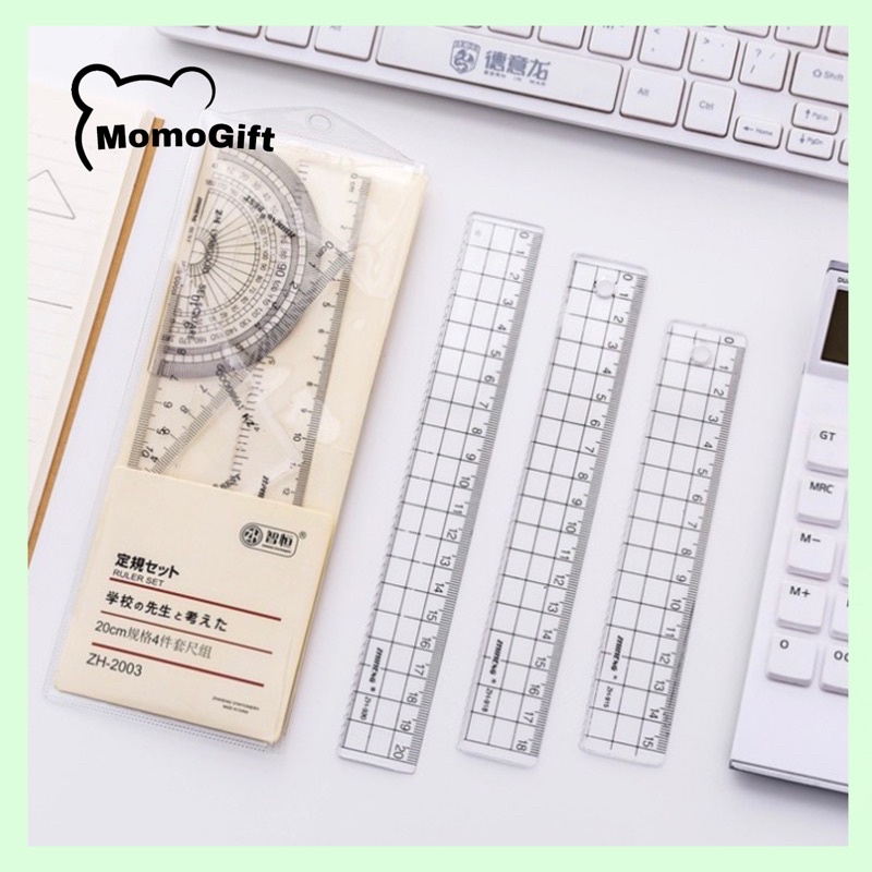 Penggaris Busur Derajat Grid Ruller Transparan Set AT38