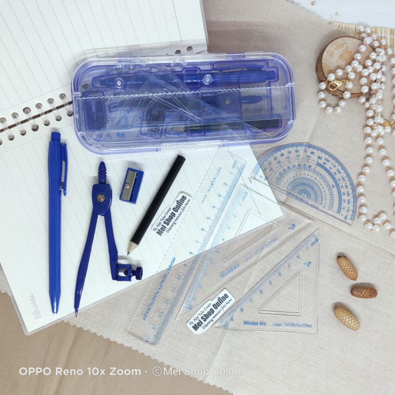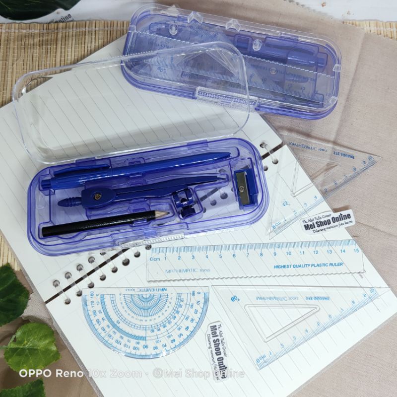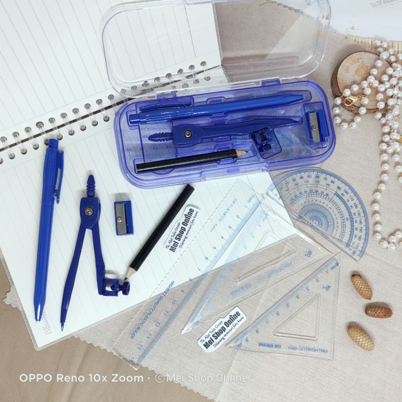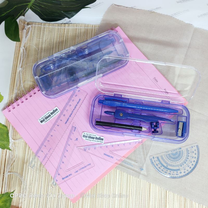 Penggaris + Jangka + Busur Set Lengkap School Set