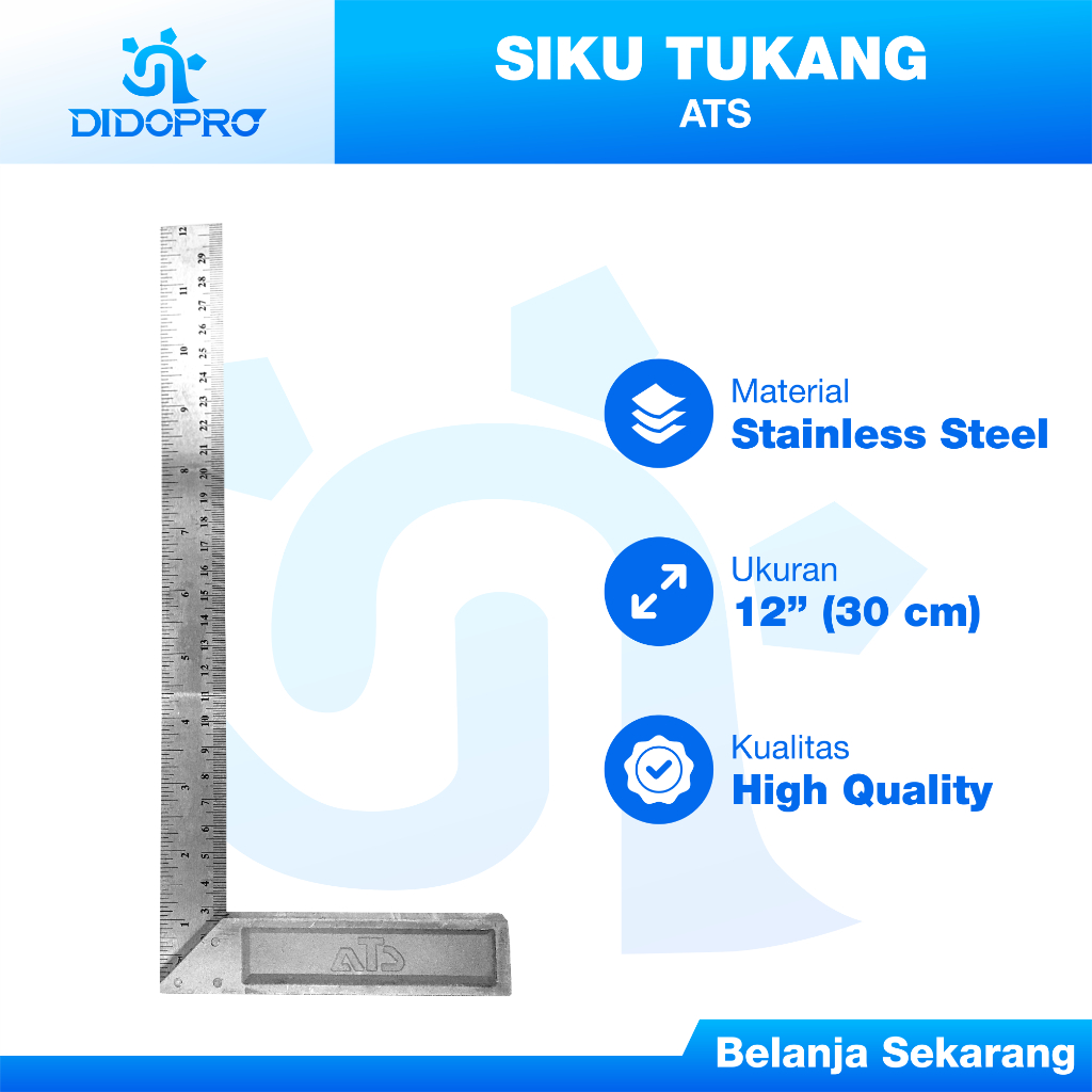 Siku Tukang 12" ATS Siku tukang 10 inch 12 inch / Siku L / Penggaris tukang Siku Tukang 12" ATS