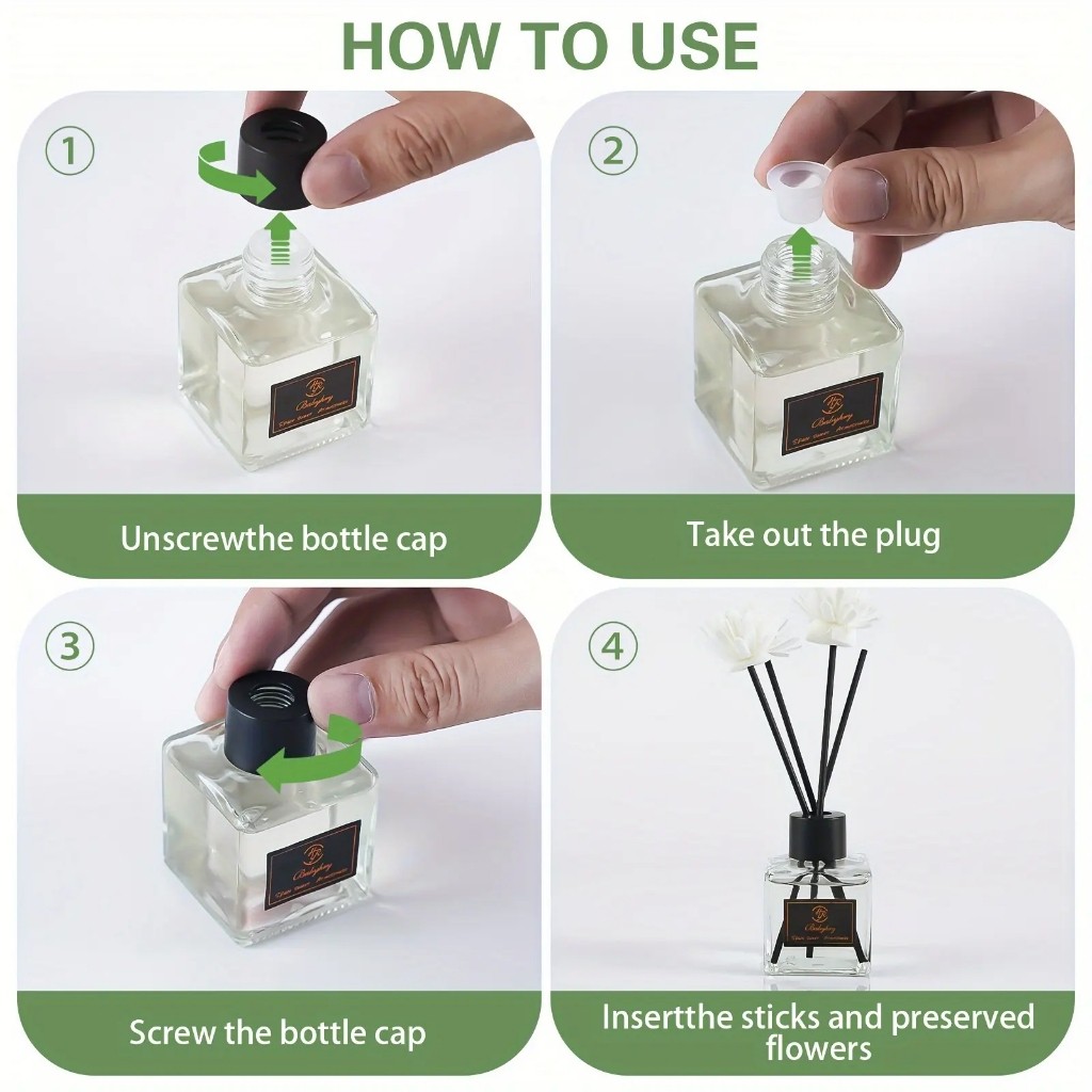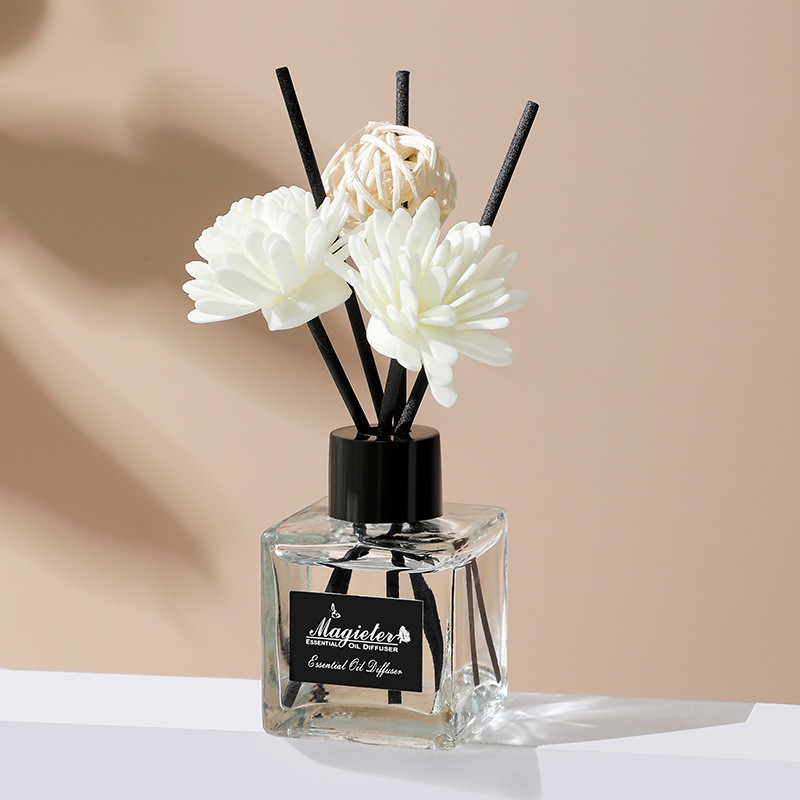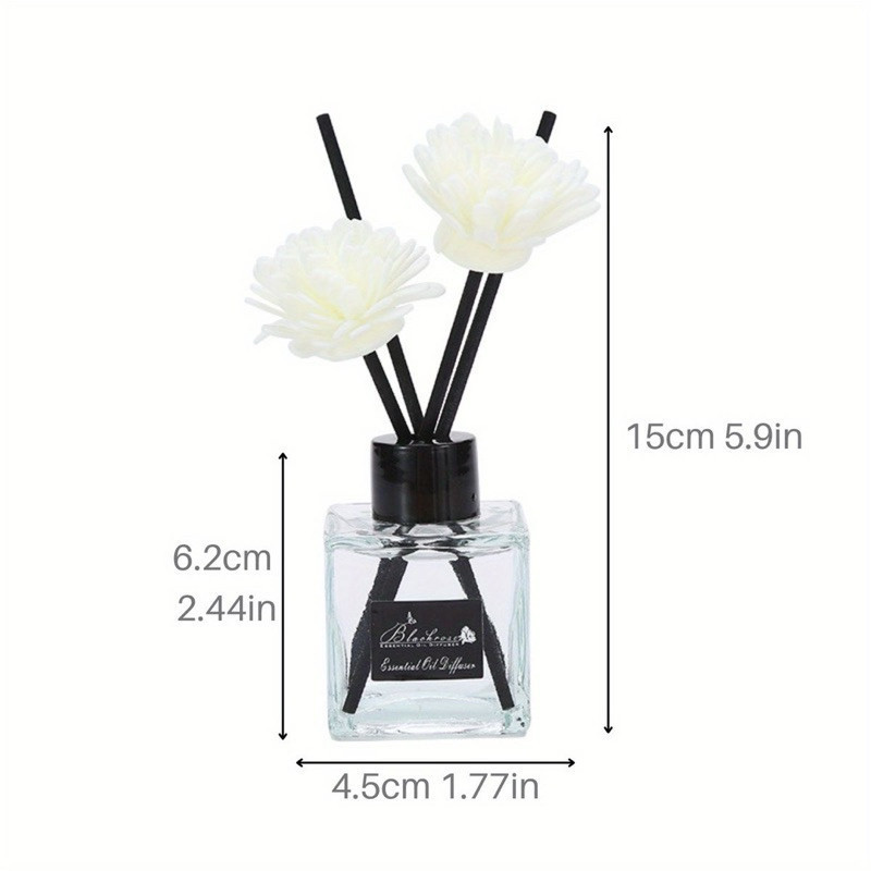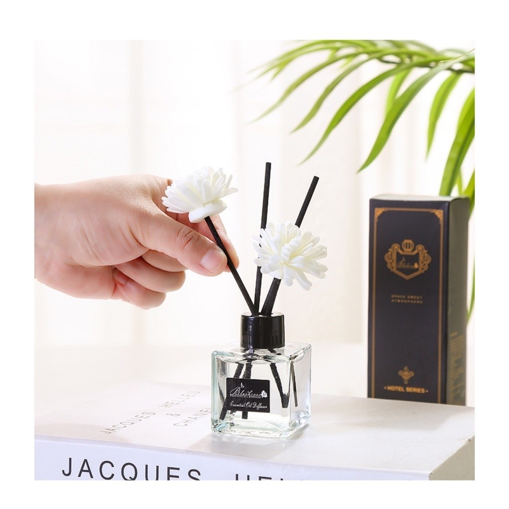 Pengharum Ruangan Reed Diffuser Alat Pengharum Ruangan Parfum Essensial Oil Hiasan Stik Kayu + Bunga