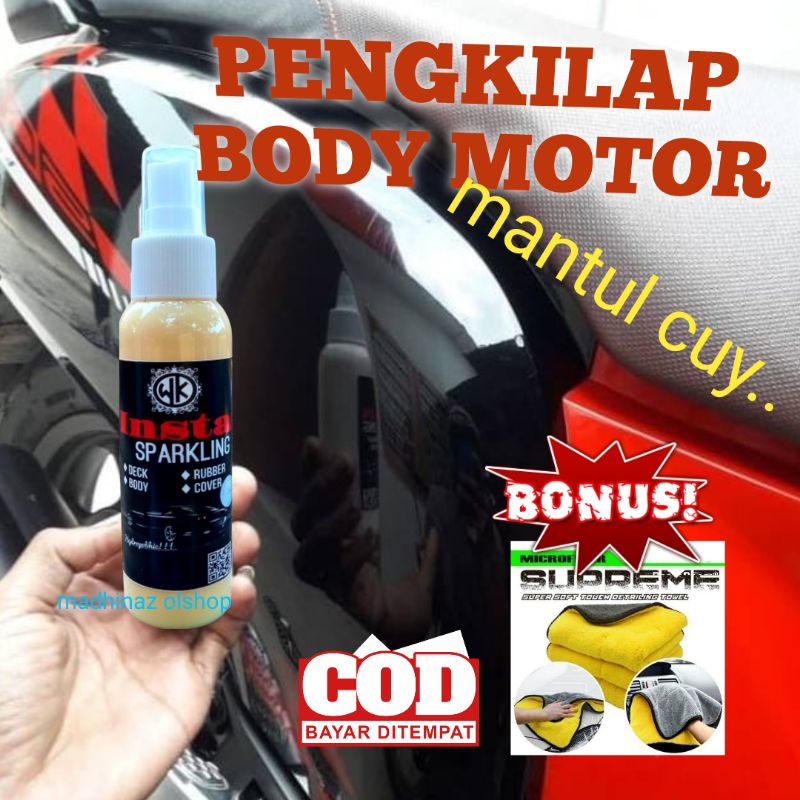 Pengkilap body motor efek daun talas / insta sparkling bonus kain microfiber.