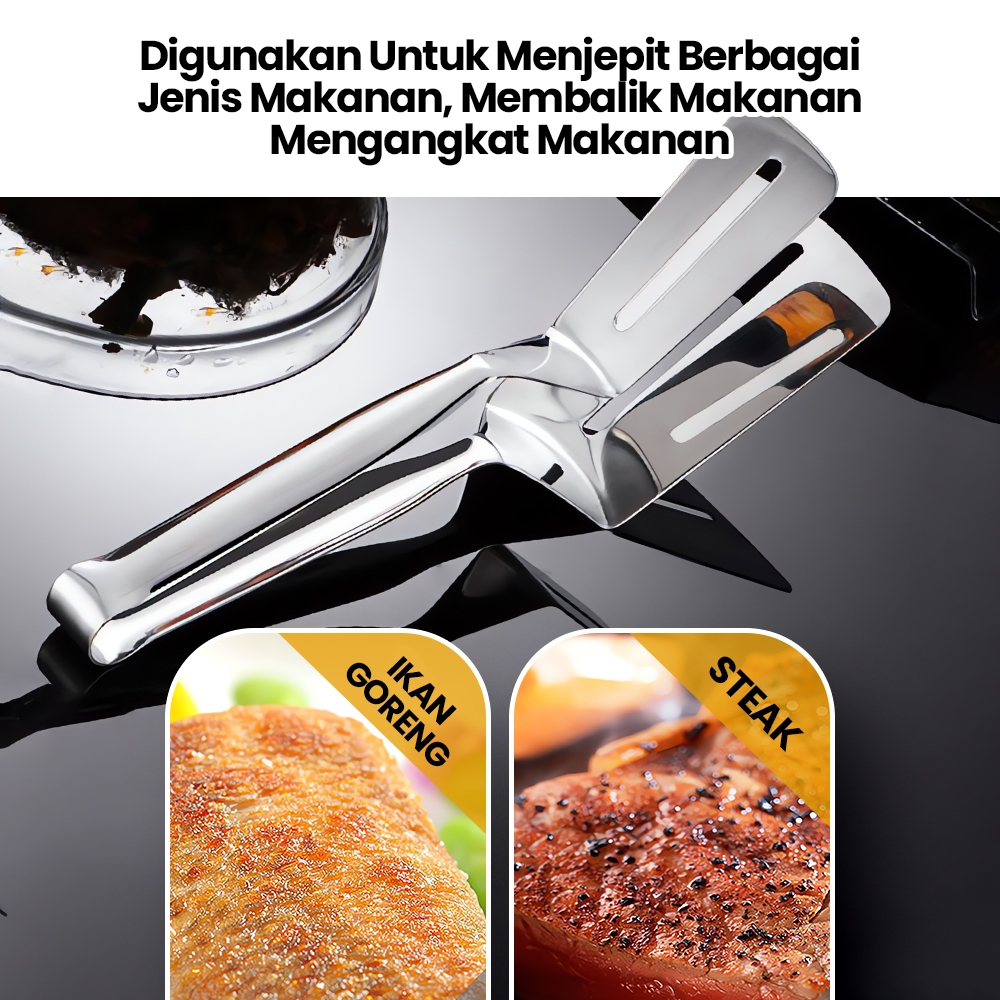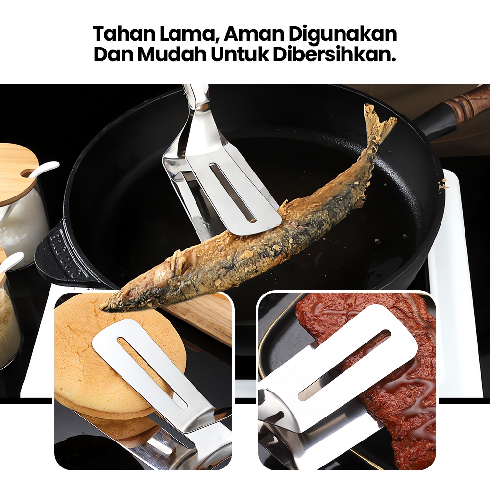 Penjepit Steak Daging BBQ Capitan Makanan Jepitan Ikan Spatula Stainless 304 Serbaguna