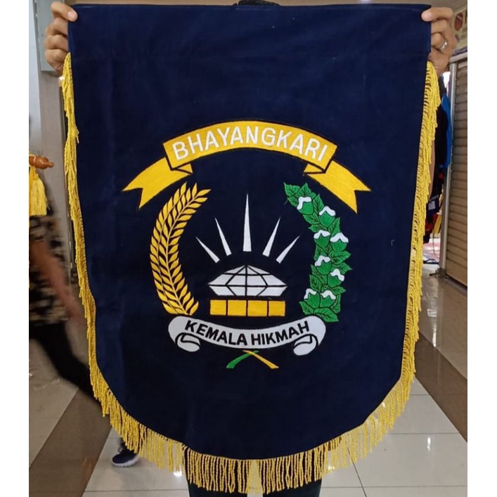 Pennant Flag Banner / Vandel Bhayangkari cm Bordir + Palang Kayu