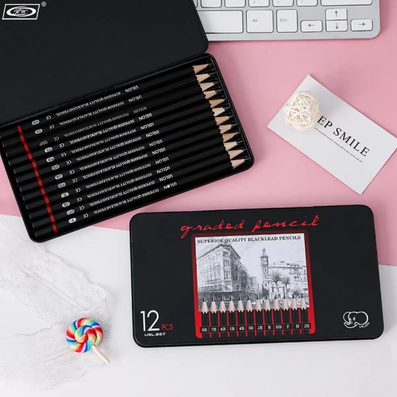 Pensil Drawing Sketch 12pcs Pensil Gambar Sketsa 2h-8b Pensil Drawing Sketch Pencil Sketch Set Pensil Lukis