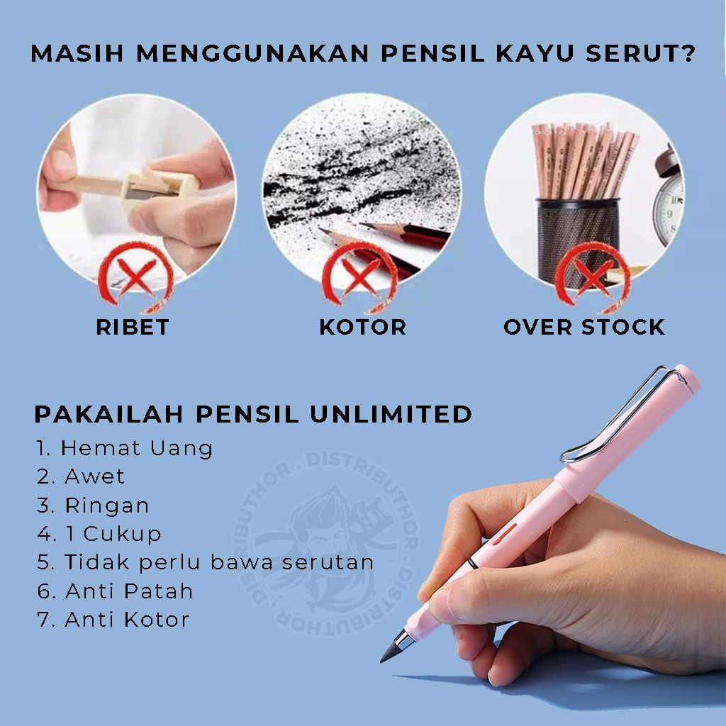 Pensil Eternal Pencil Sekolah Unlimited Pinsil Tulis Gambar Tanpa Batas Dengan Penghapus Pembersih Hemat Eternal Pencil Ajaib - DISTRIBUTHOR