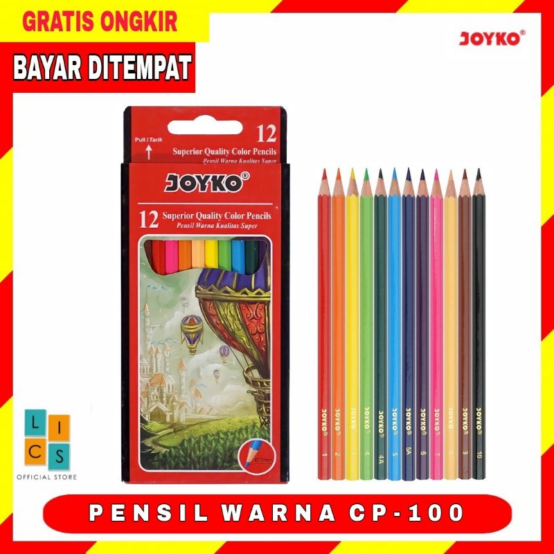 Pensil Warna Joyko CP-100 12 Warna Panjang Pencil Colour CP100 Drawing Pensil Menggambar