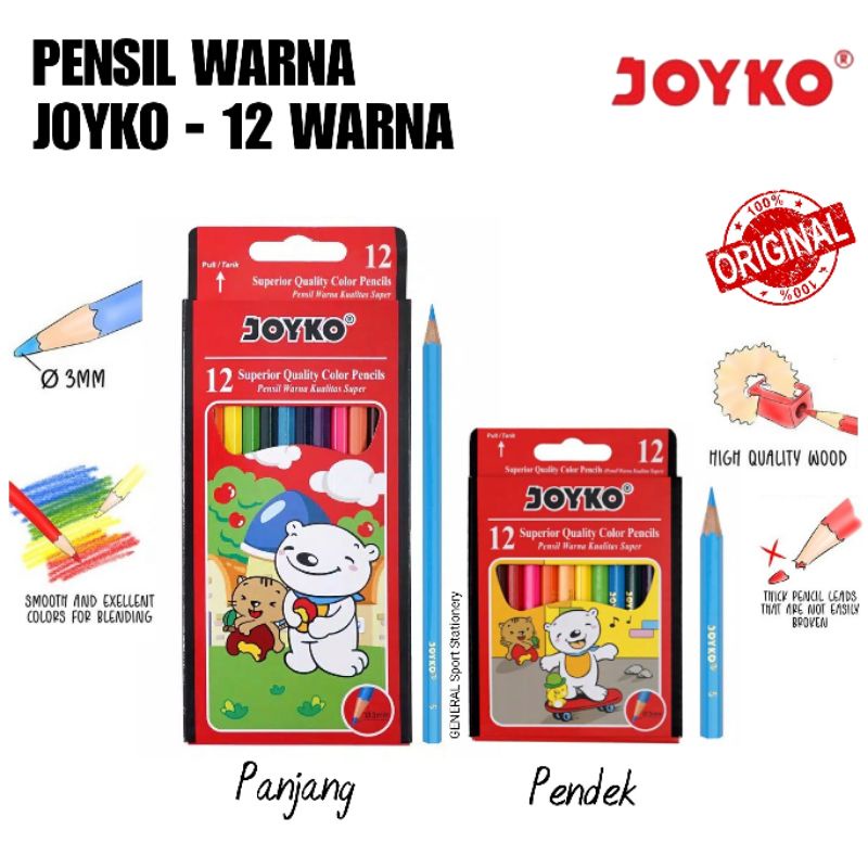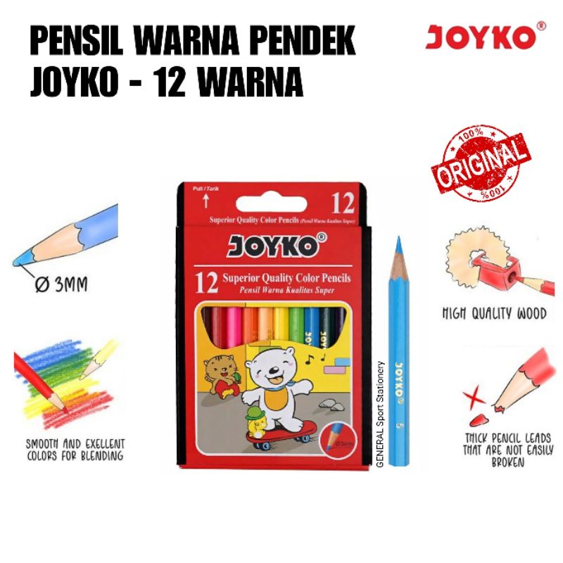 Pensil Warna Pendek 12 Warna JOYKO