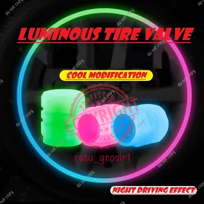 Pentil Led Nyala Ban Mobil Motor Sepeda Glow In The Dark Luminous tutup pentil NEON premium valve cap high quality luminous powder build