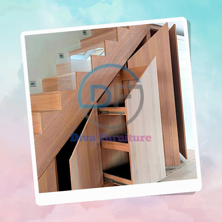 Penyimpanan Bawah Tangga HPL | Custom Kabinet Bawah Tangga | Furniture Murah Bergaransi Berkualitas | Diva Furniture | Furniture Anti Rayap dan Jamur | Storage | Ruang Penyimpanan | Kabinet