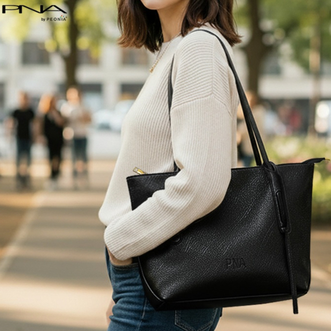 Peonia PNA JIYA Tote Bag Tas Import Besar kondangan wanita korea pesta style Kulit Resleting Selempang Bahu Kantor Kerja Sekolah Kuliah Outdoor Trendy Fashion Travel Haji Umroh Casual Perempuan Cewek