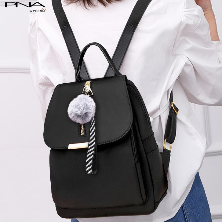 Peonia PNA MOLLY POM Water Resistant Tas ransel wanita Import korea style Punggung Kantor Kerja Sekolah Kuliah Outdoor Trendy Fashion Style Travel Haji Umroh Casual Backpack Anak Remaja Perempuan Selempang Cewek Bag