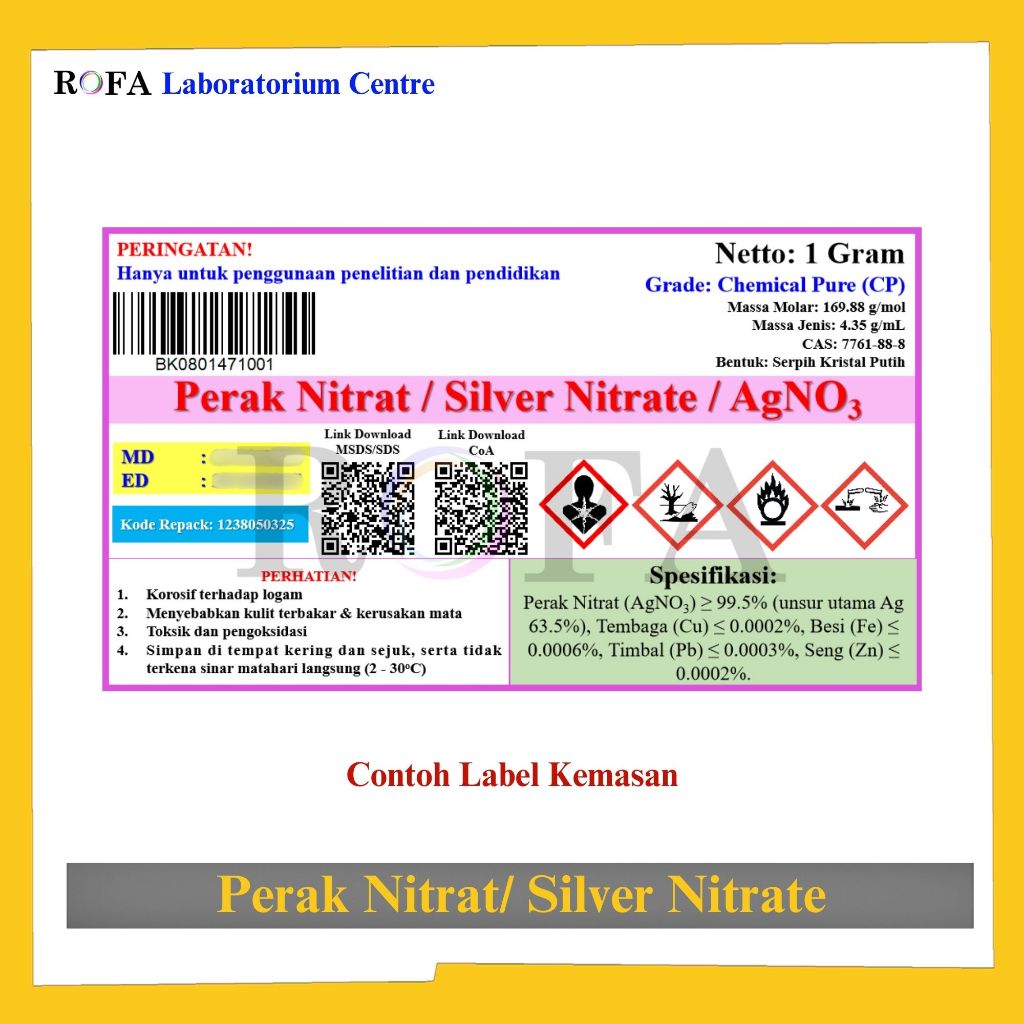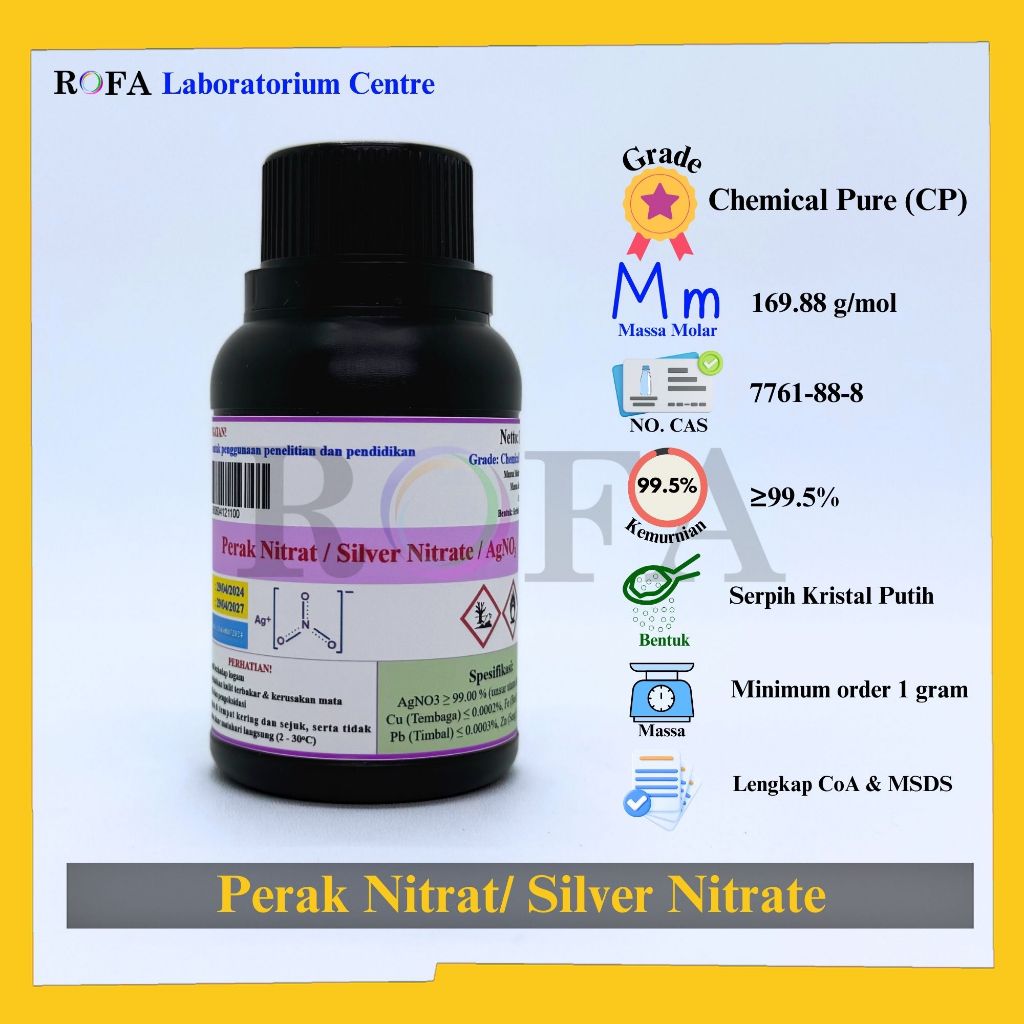 ROFA Perak Nitrat / Silver Nitrate / AgNO3 99% CP Eceran 1 Gram