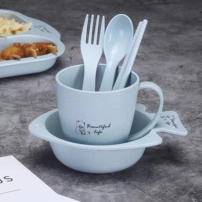 Peralatan Makan Anak 6 In 1 Piring + Gelas + Mangkok / Kids Feeding Set Sendok + Garpu + Sumpit BPA FREE