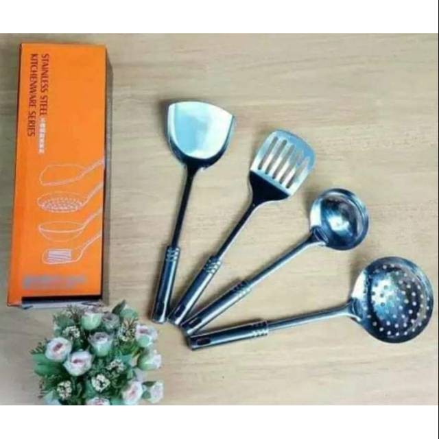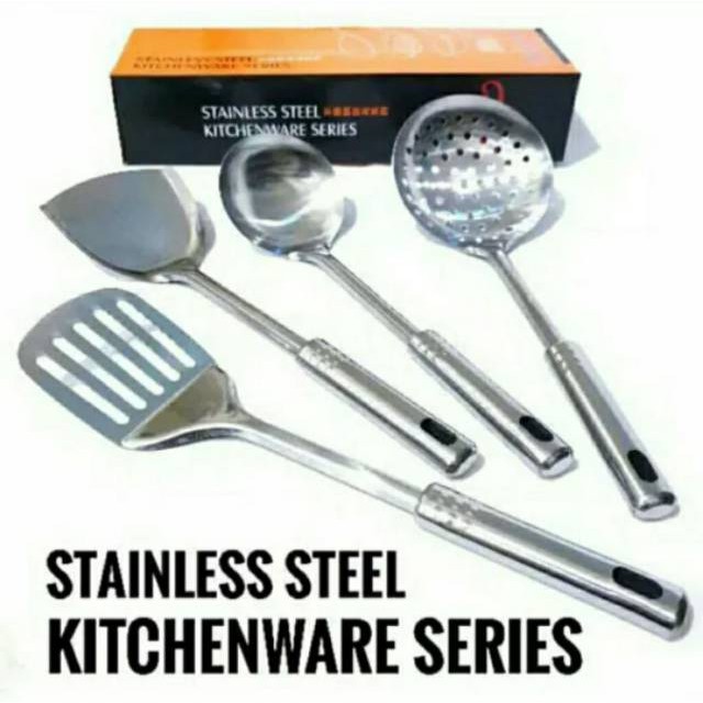 Peralatan Masak Sutil Sodet Set Kitchen Ware Stainless Stell 4 in 1 Spatula Stainless Steel Kitchenware Series