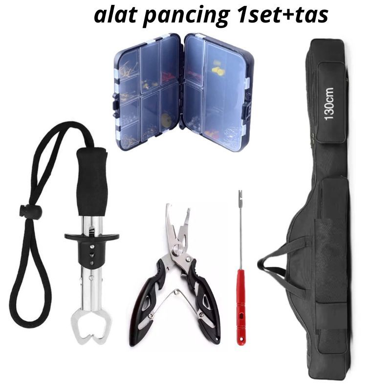 Peralatan pancing set paket perlengkapan mancing ikan tas joran tang box kail kumbul gripper ikan