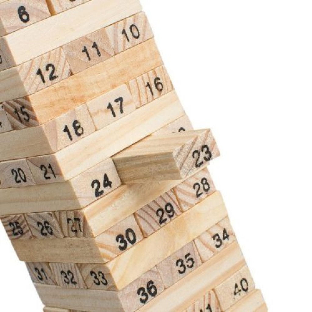 Permainan Uno Stako Kayu 54 Balok dengan 4 Dadu