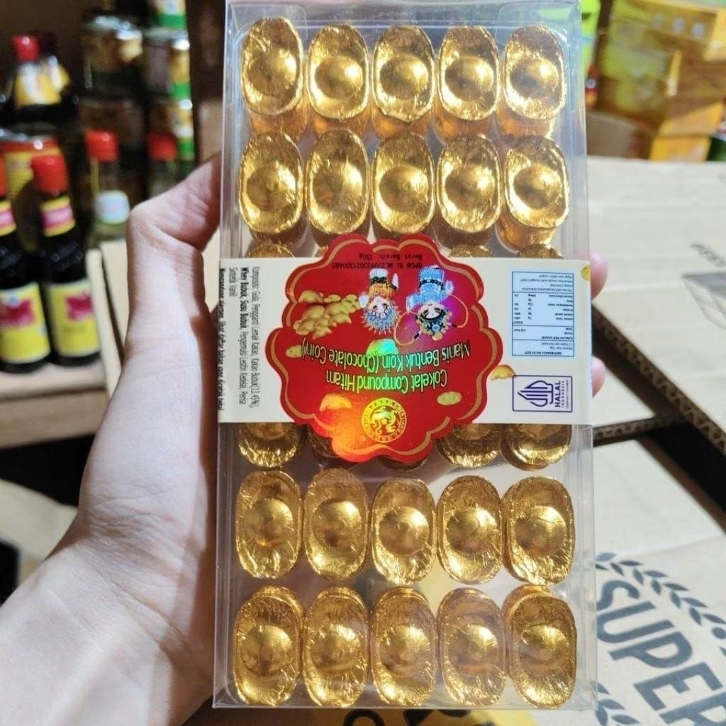 CLJ Coklat Compound Hitam Manis Bentuk Emas isi 60 pcs HALAL/ Gold Treasure Chocolate 150g – Coklat Koin Emas Lucky Candy | Halal Coklat Bulat dan Coklat Koin Coklat Emas Coklat Ikan / Permen Jeli