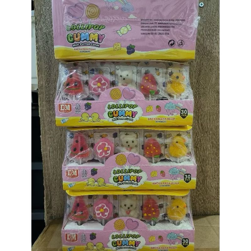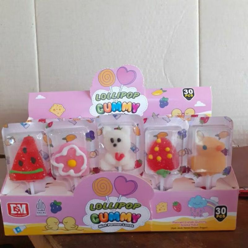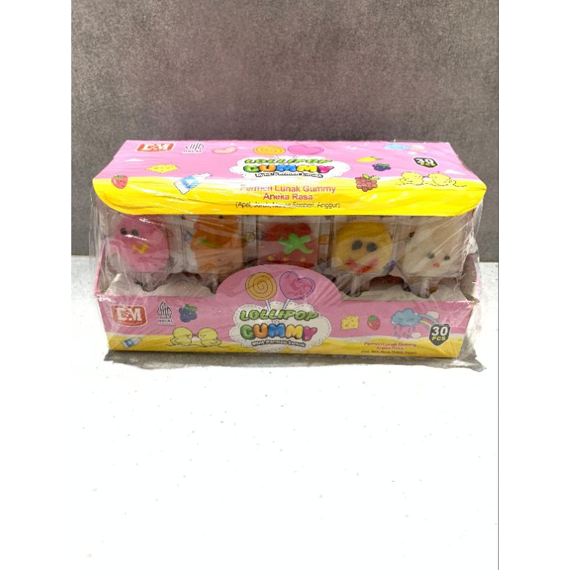 Permen Lollipop Gummy Permen Lunak Lollipop Box Pink Isi 30 pcs