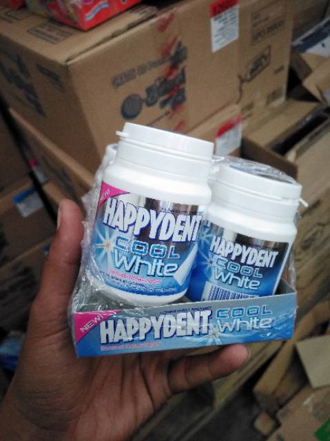 Permen happydent Happident cool white pouch isi 25, blister isi 10 botol isi 44