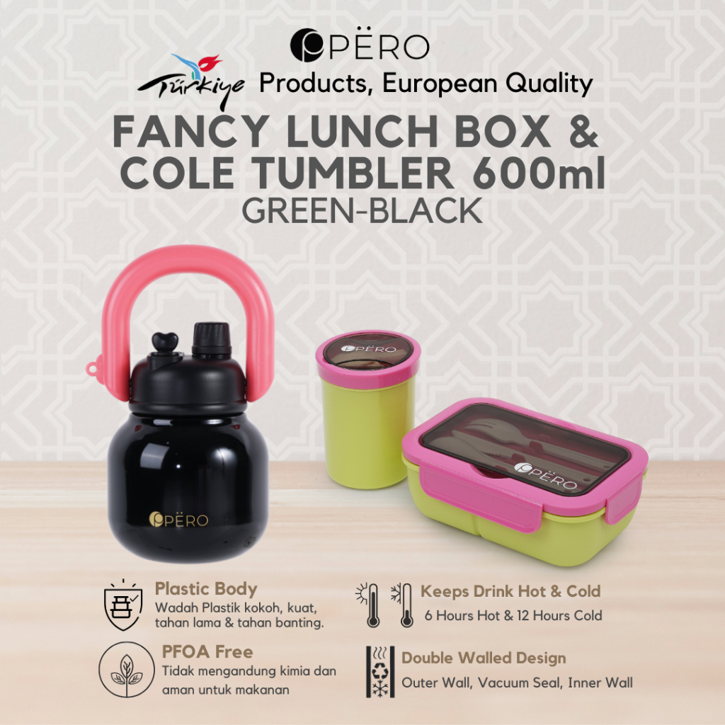 Pero Set of 2 Lunch Box Fancy With 2in1 Soup Container & Permos Cole Tumbler 600ML / Bundling Tumbler dan Tempat Makan Anak