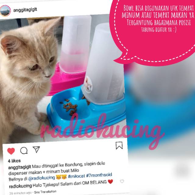 Pet Bowl Dispenser Tabung 1,5 lt Anti Semut - Tempat Makanan Minuman Kucing Anjing Kelinci Hewan [ JUWIES RADIO KUCING ]