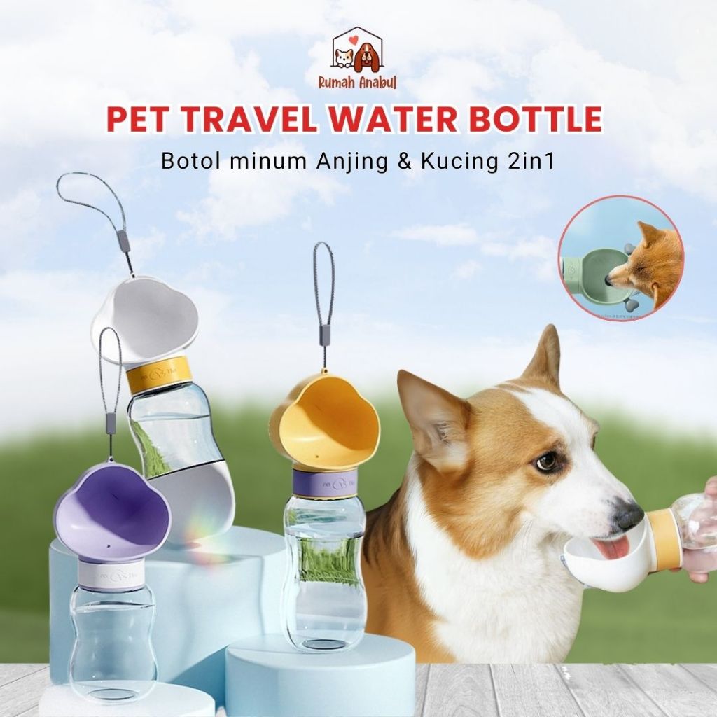 Pet Travel Water Bottle Botol Minum/Makan Anjing Kucing - 2 in 1 Pet Travel Water Bottle Botol Minum Anjing Dan Kucing Portable Untuk Travel - Botol Minum Anjing Kucing Ukuran Besar - Botol Minum Hewan Praktis