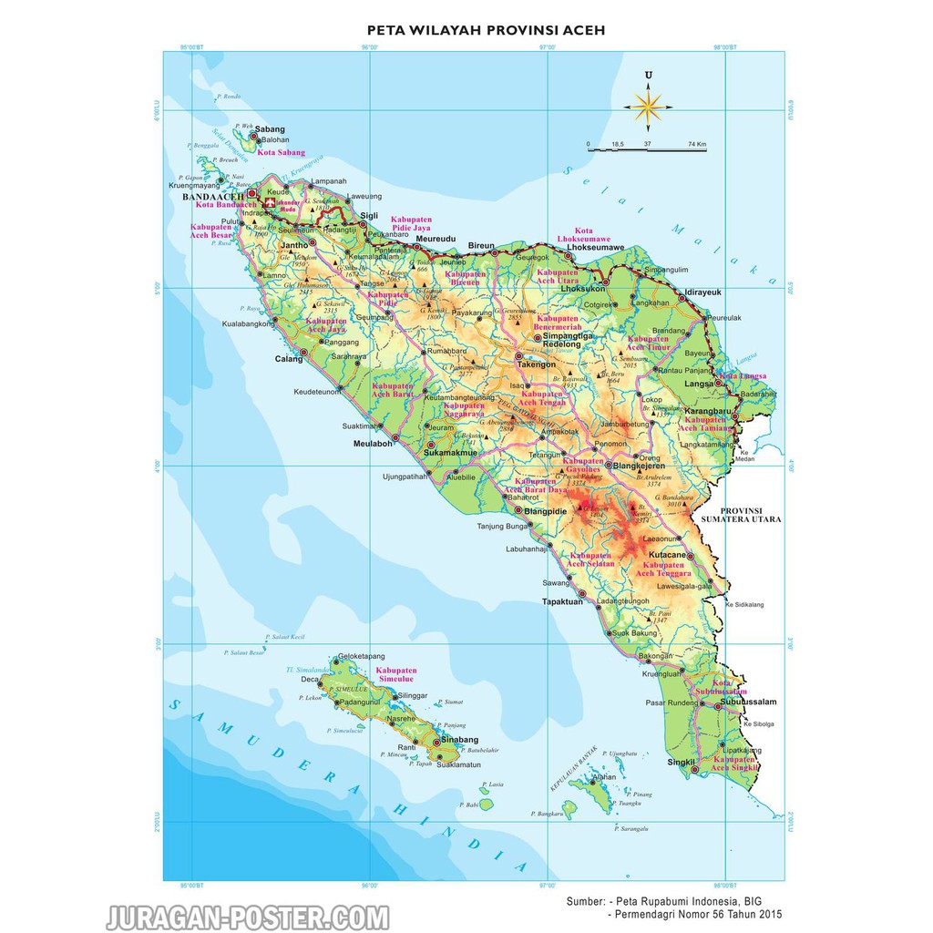Peta Dinding Provinsi Aceh Ukuran 150x200cm Bahan PET