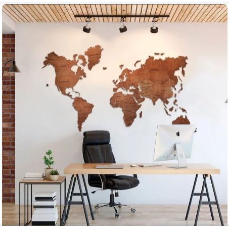 Peta Dunia Kayu / Hiasan Dinding Peta / World Maps / Wooden World Map / Dekorasi Dinding - M