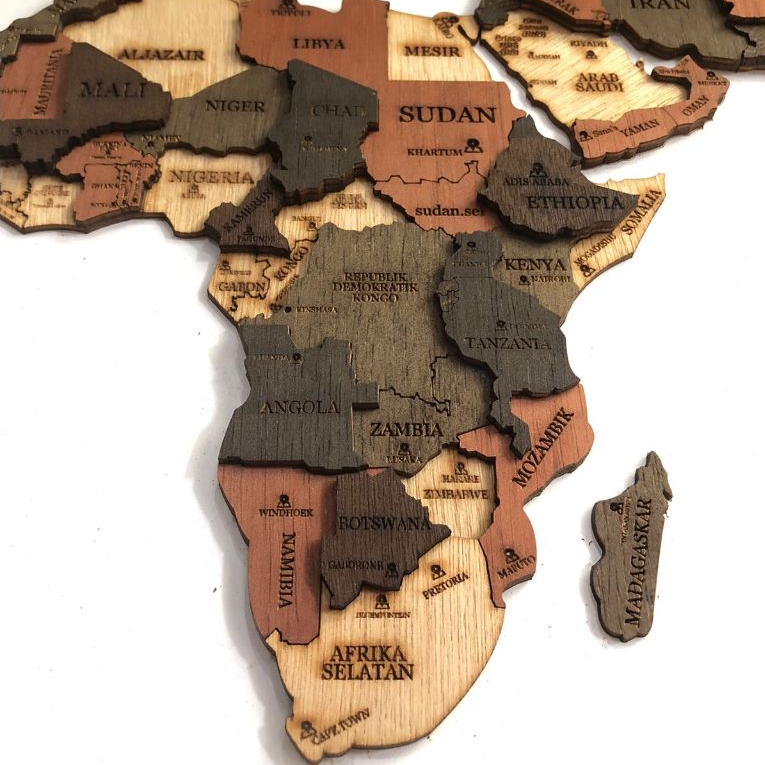 Peta Dunia World Map Hiasan Dinding dari kayu 3 layer