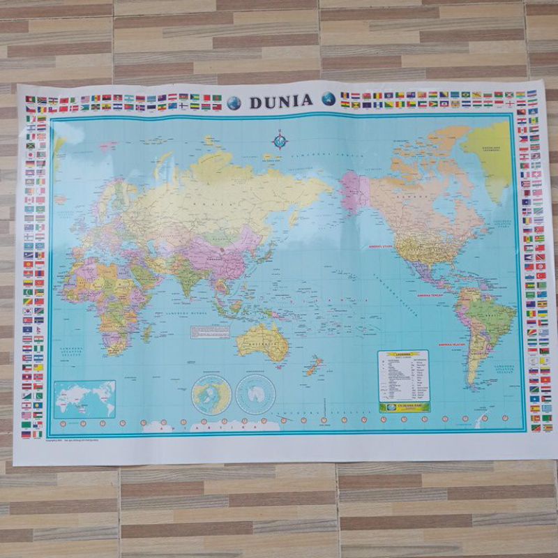 Peta Lembaran Dunia Uk.102x72cm Tanpa Bingkai / Laminasi glossy / Edisi Terbaru Tahun 2025