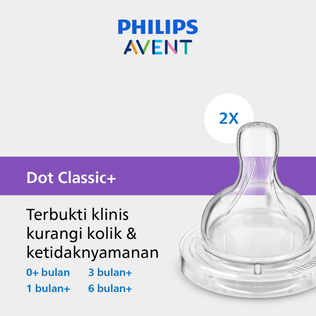 Philips Avent Teat Classic Flow 0M+ | 1M+ | 3M+ | 6M+ (2pc) - Dot Bayi SCF631/27 SCF632/27 SCF633/27 SCF634/27