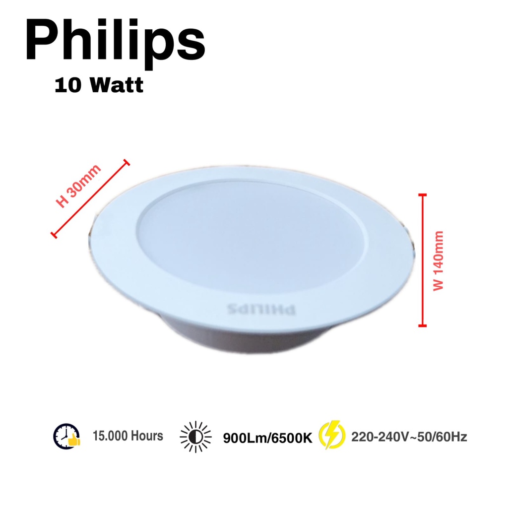 Philips Downlight LED 10 Watt ~ Putih / Downlight LED Philips 10 Watt / Philips LED Panel 10 Watt / Downlight Philips / Lampu Philips / LED Philips 10 Watt ~ 6500K