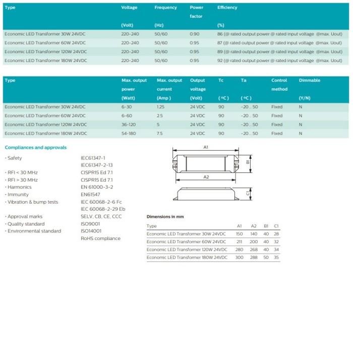 Philips Driver Adaptor Led Strip Economic Transformer 30W 24V Travo Power Supply