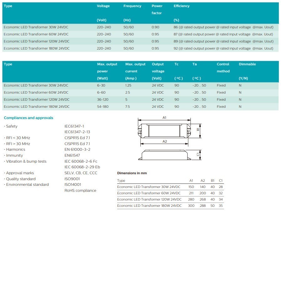 Philips Driver Adaptor Radiantline Economic LED Transformer 30W 24VDC