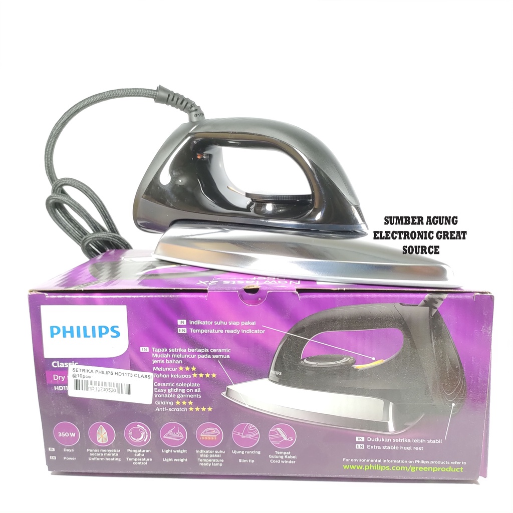 Philips HD1173 Setrika Baju Seterika 350W Awet Ceramic Coating Terbaru