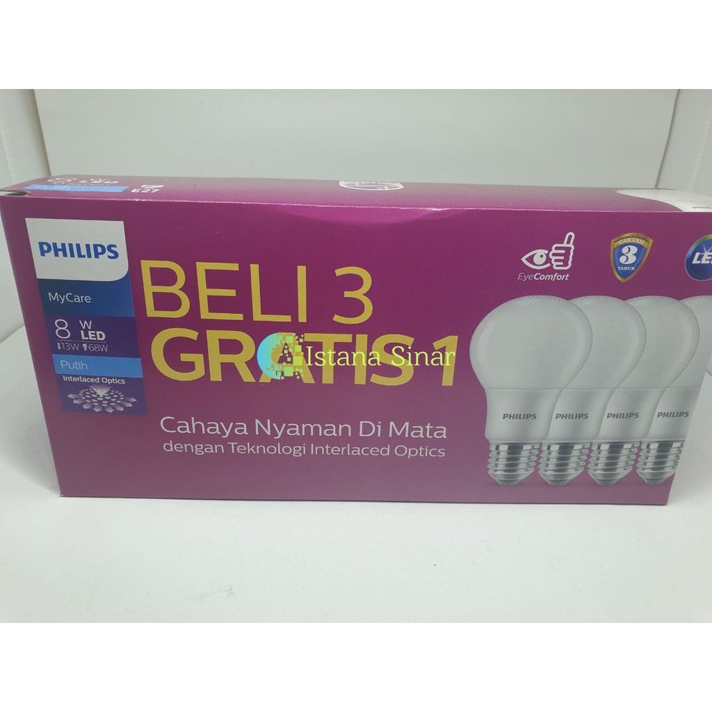 Philips Lampu LED 8Watt, 8W, 8 Watt, 8 W (1 paket isi 4PCS) Lampu LED Bulb Bohlam PHILIPS Paket 8 Watt Mycare Pack 8W isi 4 pcs