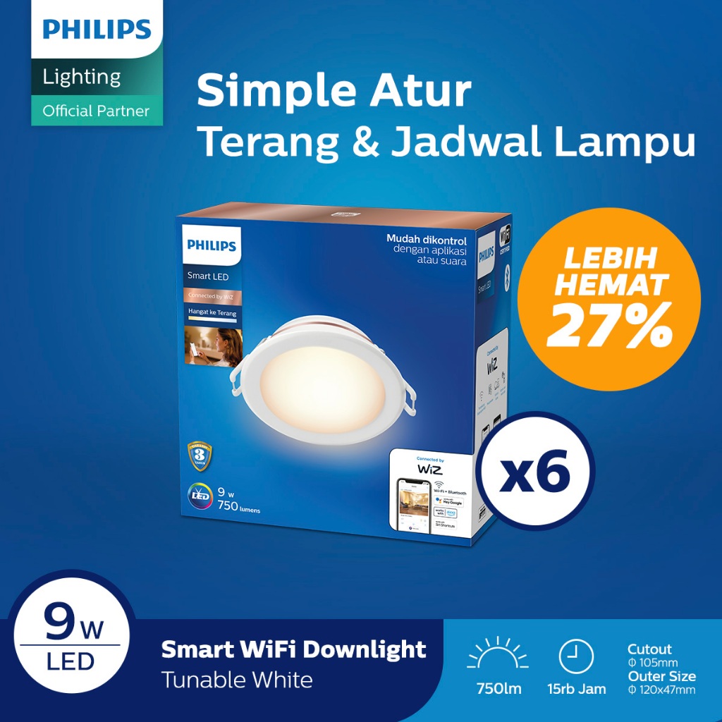 Philips Lampu Smart Wifi LED Downlight 9W - Tunable White (Putih)
