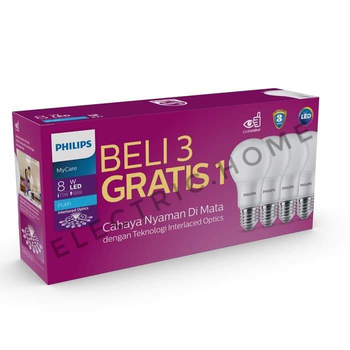 Philips MultiPack MyCare Led Bulb 6W 8W 10W 12W Putih (Paket Lampu Isi 4 LEDBulb)