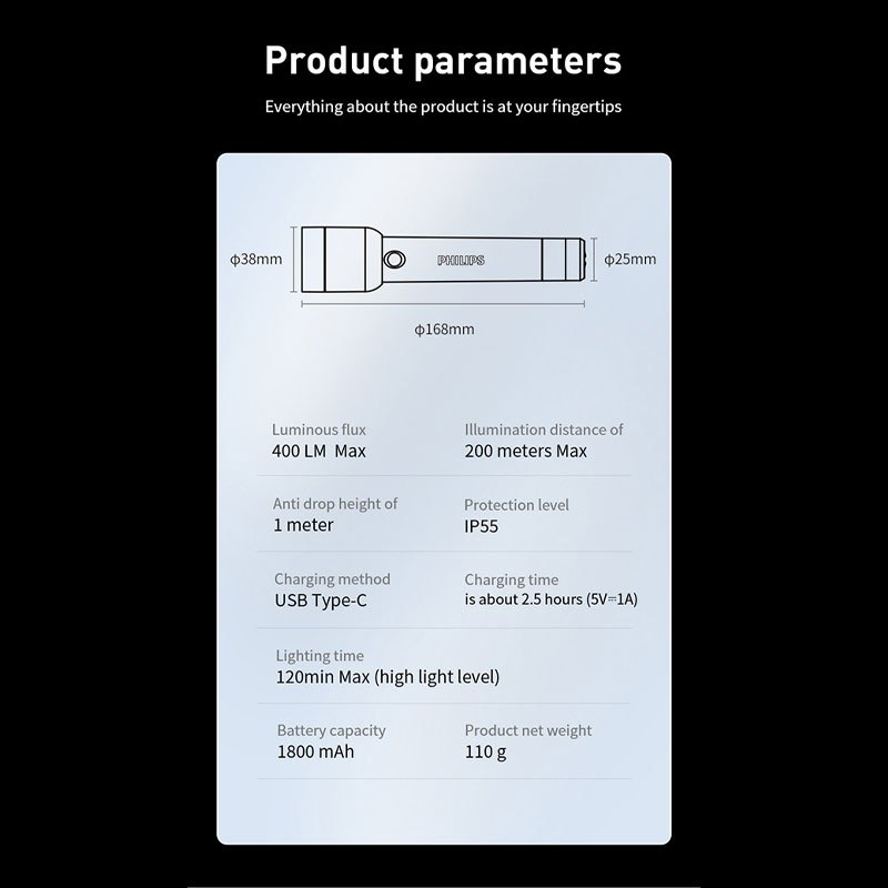 [PRE ORDER] Philips - Senter Rechargeable Flashlight With Hand Rope Black SFL1236/56 Multifungsi untuk Outdoor, Hiking & Keadaan Emergency - Garansi Resmi 1 Tahun
